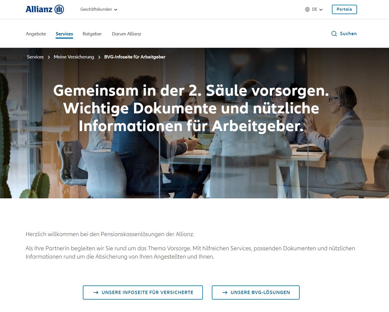 Letztes Jahr haben wir unsere Infoseite für Versicherte in der 2. Säule lanciert. Nun erscheint die Seite für Sie als Arbeitgebende im neuen Kleid. Neben Merkblättern und Formularen finden Sie dort Ratgeber, wichtige Tipps sowie die Antworten auf häufige Fragen im Zusammenhang mit der Pensionskasse.