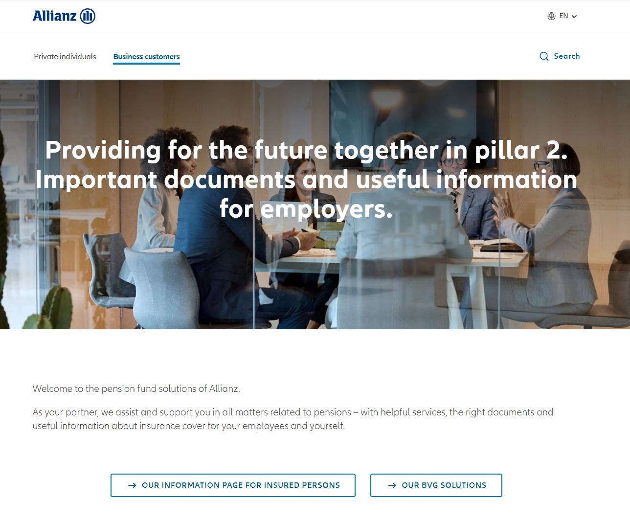 The latest General Terms and Conditions (GTC) of the Allianz collective foundations are available aallianz.ch/bvg-documents.